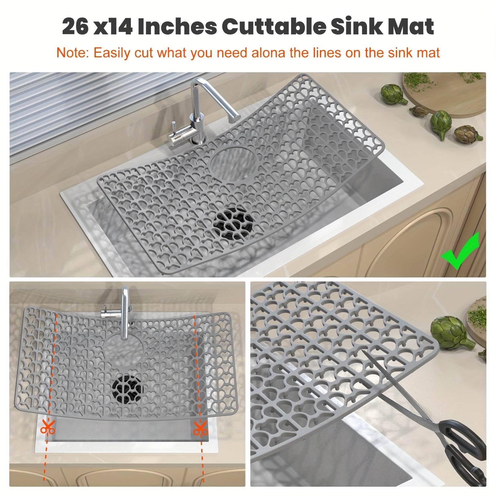 Silicone Sink Mat Silicone Kitchen Sink Mat | For Farmhouse Stainless Steel Porcelain Sink With Rear Drain, Sink Protectors For Bottom Of Kitchen Sink